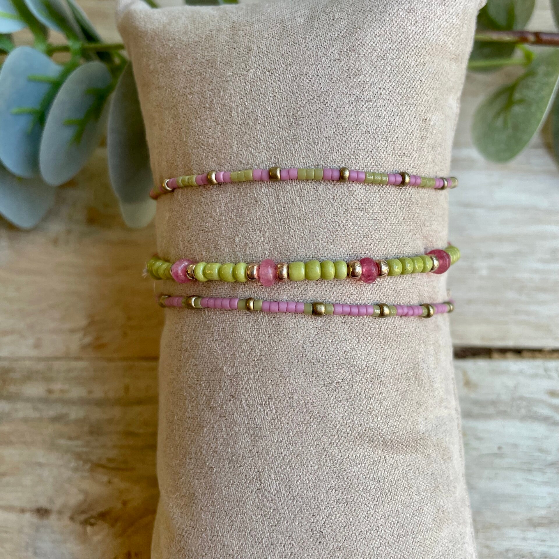 Handgemaakte elastische armbanden.