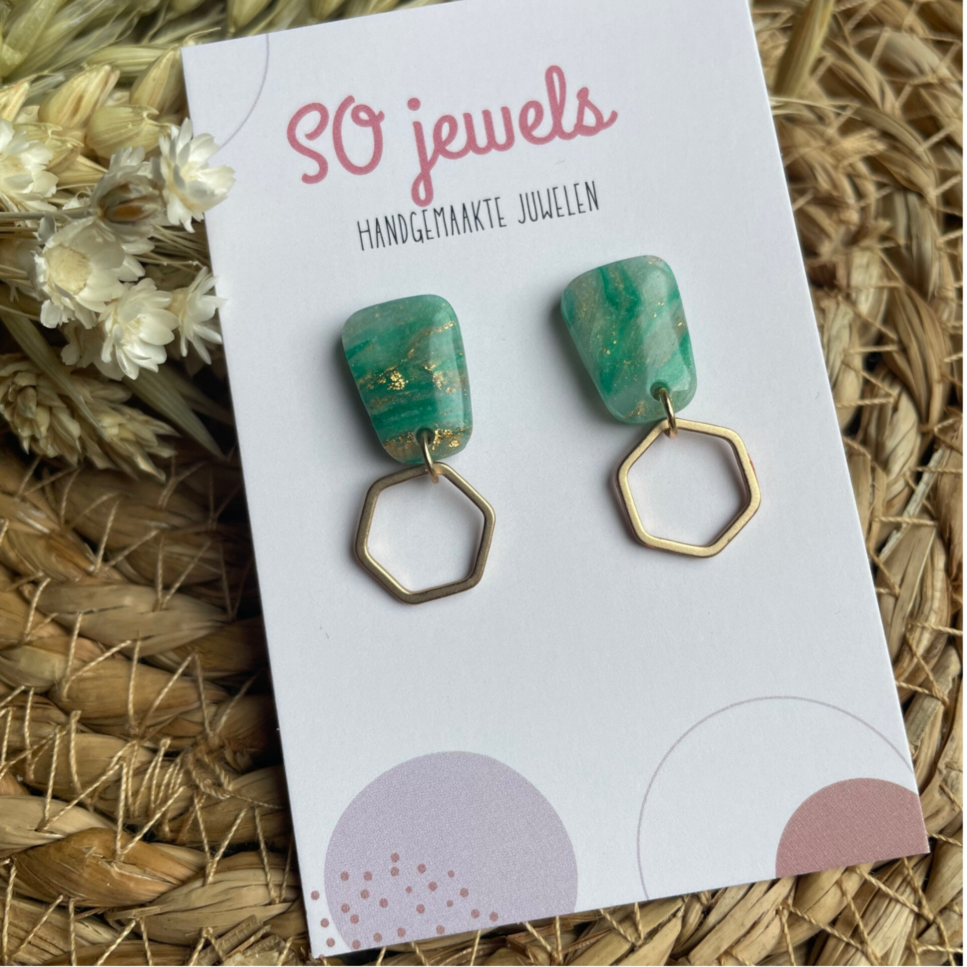Deze oorhanger is volledig handgemaakt uit polymeerklei.