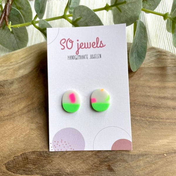 Deze oorstekers zijn volledig handgemaakt uit polymeerklei en dus licht om te dragen.